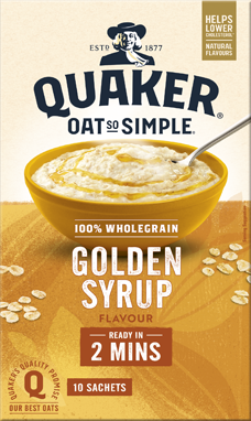 Quick and easy to prepare, Quaker Oats Golden Syrup Flavour is perfect for busy mornings, providing a warm, satisfying meal that keeps you fuller for longer. Enjoy it on its own or customize with fruits, nuts, or milk for an extra boost of flavour and nutrition.